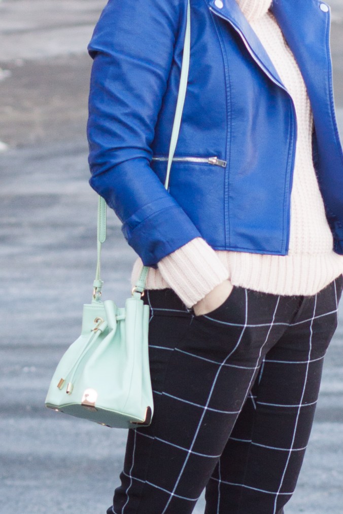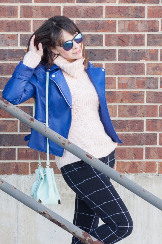 Blue Moto Jacket: Macy’s (faux leather) or a real leather option from Nordstrom Rack