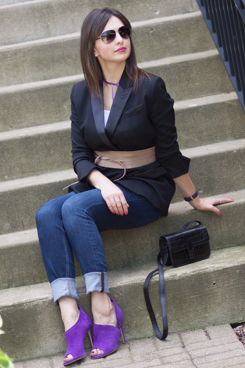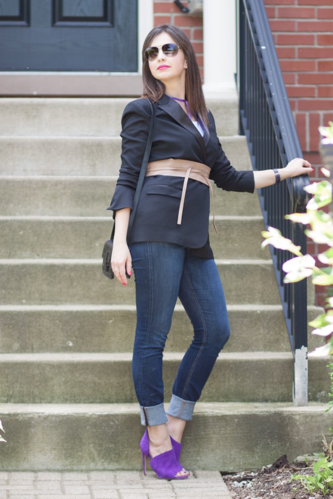 || tuxedo jacket: Nordstrom Rack find – similar || jeans || heeled booties by Jerome C. Rousseau – similar || wrap leather belt: Mango || crossbody: French Connection – love this one || necklace: a simple ribbon cut lengthwise