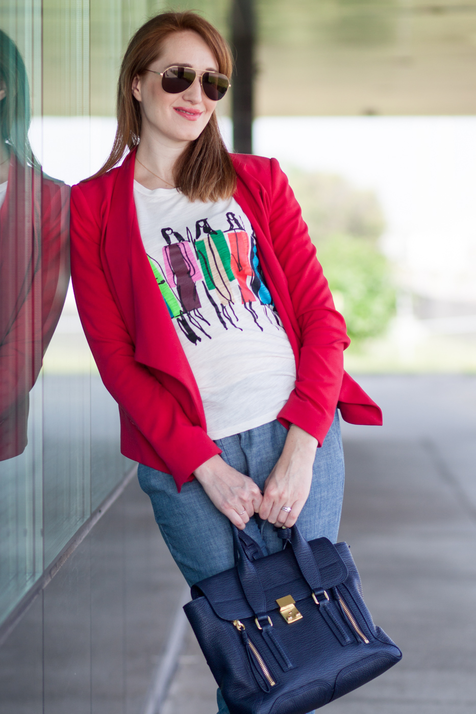 What I’m wearing: Jcrew pants, similar here; Jcrew tshirt; BCBG jacket, similar here; shoes; 3.1 Phillip Lim bag, similar here.